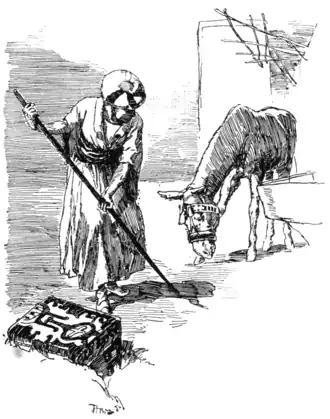 This time, Rajeb rode upon his ass. After putting up his steed in his old stall, he proceeded to search the house. In that miserable hovel, not a para, not a single thing of any value, was to be found. All the time that Rajeb was examining the premises, the ass whined and brayed. Thinking he needed food and drink, his master went out several times, and fetched him straw, water, and barley; but they lay untouched, and the animal continually stamped with his foot upon the floor of the stall.