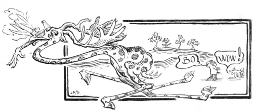 Before the Zoological Society find specimens of these rarities, perhaps they may come upon another giraffe or two. Sir John Maundevile really plays light with the giraffe. He might have made something much more startling of it than "a Best pomelee or spotted; that is but a litylle more highe than is a Stede; but he hathe the Necke a 20 Cubytes long; and his Croup and his Tayl is as of an Hert; and he may loken over a gret highe Hous." Moreover, the illustrative woodcut in my copy actually under-represents the neck by full two-thirds: but that is for the very best of all reasons—there is no room on the block for any more. Perhaps it was because Sir John vouched for the giraffe that up to the present century most people in this country disbelieved in its existence. But just consider how he might have put it, and with truth; and how that heavy-handed artist might have put it—without truth. An animal with a deer's head, a leopard's skin, a swan's neck; a tongue that was used as a man's hand to grasp things a foot from its nose. With eyes that saw in every direction without a turn of the head; with nostrils that closed or opened. Withal higher than three tall men, one above another, and capable of slaying a man with one kick of a hinder leg, yet so timid as to fly before a child or a little dog! One feels rather ashamed of Sir John, after all, for neglecting his opportunities. There is difficulty in the capture of a giraffe, and there is expense. These obstacles, however, and greater ones, have been overcome again and again in time past by the Zoological Society of London, and