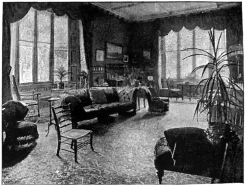 The dining-room need be of goodly size—frequently some thirty or forty people sit down at its tables. There are many fine oil-paintings here. Two bear the initials "A. S." "A. S." was Arthur Stocks. When the Bishop of Ripon was vicar of St. James's, Holloway, Arthur Stocks was a superintendent in the Sunday school. He used to travel backwards and forwards twice every Sabbath to the school, and when he died he left a wish that his quondam vicar should have one of his works. It has the best place in the room, though there are several valuable works of the Titian School, and a striking canvas, believed to be a Mazzoni, which was picked up in a general shop in a western town.