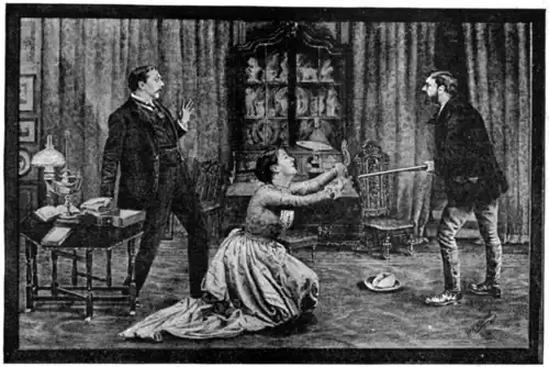 Here are a series of delightful pictures showing Mr. and Mrs. Kendal in Gilbert's "Sweethearts," and I am reminded that the gifted actor and actress were the first to appear before the Queen after a period of fiveand-twenty years, during which Her Majesty had never seen a play, the performance that night consisting of "Sweethearts" and Theyre Smith's "Uncle's Will." And as one takes note of many rare works—the bedroom is almost entirely given up to Doré's marvellous creations, though near the window is a splendid specimen of the photographer's art: a head of Miss Mary Anderson—one cannot fail to observe the family spirit everywhere—sometimes portraits of children, sometimes small and dainty pencil studies made of them by their father. Occasionally theatrical sketches by Mr. Kendal appear. Here are some of the principal members of the old St. James's Company, who used to give Mr. Kendal sittings between the acts—here a capital bit of artistic work depicting a scene from "The Squire," made from stray memorandums and with the aid of a looking-glass for securing the actor-artist's face.