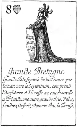 We come now to playing cards designed as methods of education, of which a considerable number have been produced—and which cover the widest possible range—from cookery to astrology! In the middle and latter half of the seventeenth century, England, France and Germany abounded in examples, the most attractive being the series of "Jeux Historiques," invented by Desmarests, a member of the French Academy—acting under the instructions of