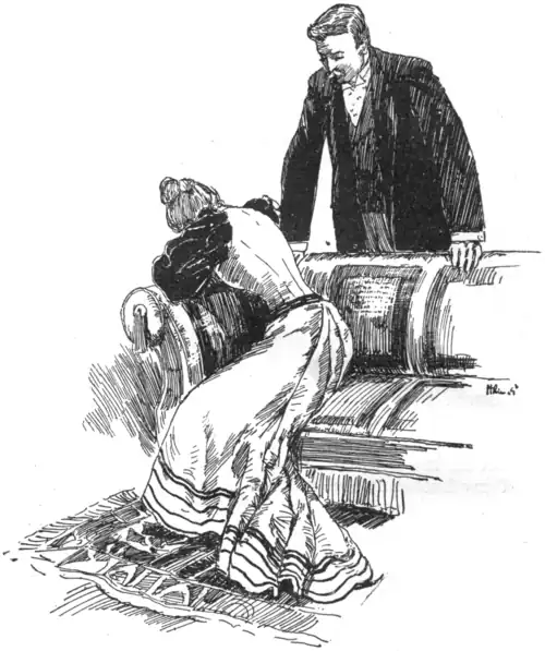 Fanny (preventing him): And you won't give me an answer. (Bursts into tears and throws herself upon the sofa. Dick looks pityingly at her.)