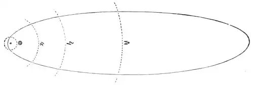 PLAN OF THE ORBIT OF HALLEY'S COMET COMPARED WITH THE ORBITS OF CERTAIN PLANETS.