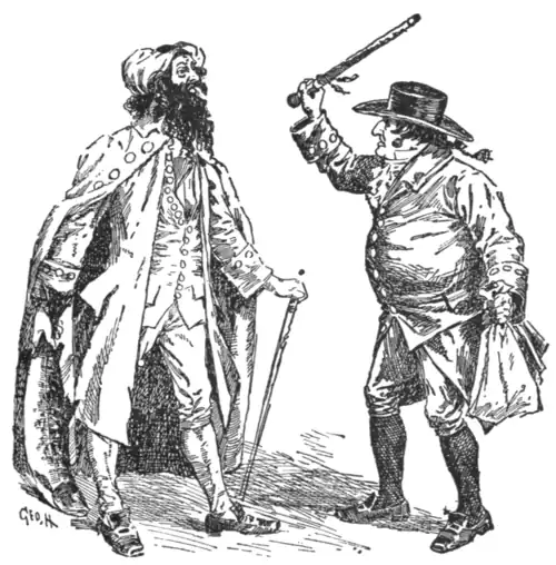 "Slanderer, indeed! I repeat, you are a knave and a jackanapes. You—a pauper—a beggar—with a wife and children. How can you have the face to go and spend two