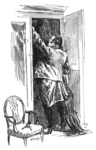He did not deign to bestow a glance upon the garments till Grobstock observed: "There! I think that's all I can spare." Then he turned leisurely and regarded—with the same benign aspect —the litter Grobstock had spread the bed—a medley of articles in excellent condition, gorgeous neckerchiefs piled in three-cornered hats, and buckled shoes trampling on white waistcoats. But his eye had scarcely rested on them a quarter of a minute when a sudden flash came into it, and a spasm crossed his face.