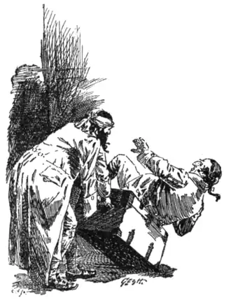 After that there was a dead silence. The Schnorrer majestically folded some silk stockings and laid them in the box. Upon them he packed other garments in stern, sorrowful hauteur. "tilted the sitter off the box." Grobstock's soul began to tingle with pricks of compunction. Da Costa completed his task, but could not shut the overcrowded box. Grobstock silently seated his weighty person upon the lid. Manasseh neither resented nor welcomed him. When he had turned the key he mutely tilted the sitter off the box and shouldered it with consummate ease. Then he took his staff and strode from the room. Grobstock would have followed him, but the Schnorrer waved him back.