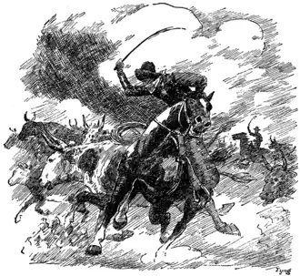 Up to the early '90's, however, he had been king, and no one had really questioned his authority for he always backed up his claims with force. But things had come to a head one spring morning in the early '90's when about two hundred cow-punchers, armed to the teeth, had met an equal number of sheriffs composed of homesteaders and their sympathizers. The cow-punchers had come out to eject some homesteader from land which they thought they owned. The two little armies had been drawn up face to face and a desperate encounter would have ensued had not a troop of United States cavalry intervened. This blow by the homesteaders had broken the power of the cattle men for all time.