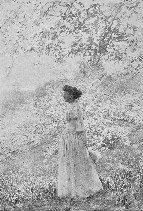 About her waist is a gorgeous scarf Of crimson and of gold, As light and free as the gipsy's laugh Is every careless fold.