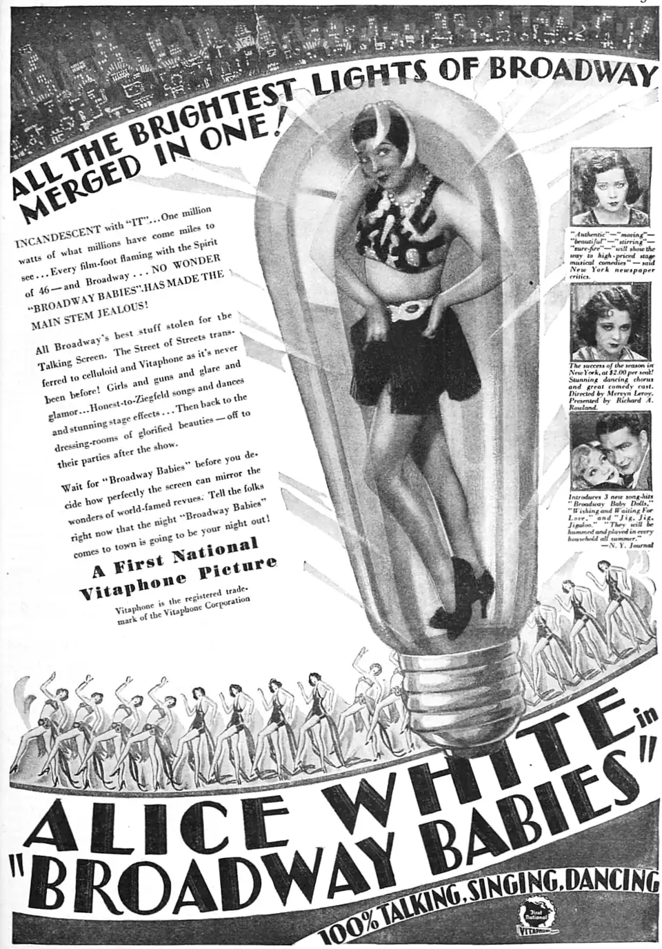 You can see by the expression on Director Millard Webb's face that he doesn't care for brunettes―even of the glorified variety. Now if that were blonde Mary Eaton in the polka-dotted bathing suit―! Incidentally, Director Webb's opus, "Glorifying the American Girl," is going to be something new―a backstage drammer, no less, showing us how the chorus girls really talk. Why not begin numbering 'em? For instance "Broadway Melody" could be X1394, "Broadway" X1993, etc.