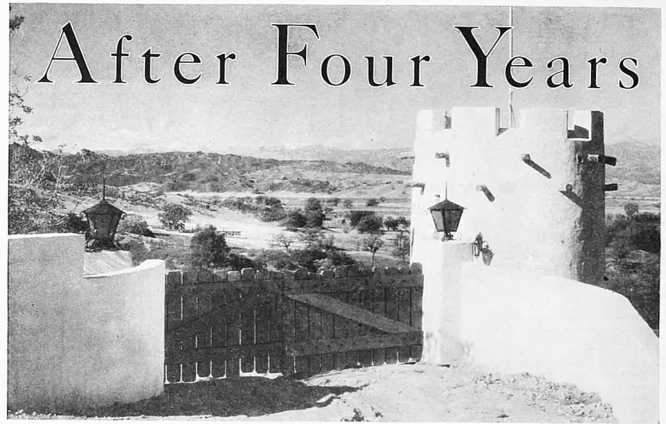 Looking across the gates of Bill Hart's ranch at Newhall. Here, but for domestic tribulations, Bill's little boy, Bill, Jr., now seven, would be playing happily