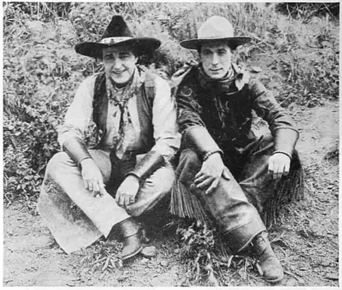 Shortly after this, business troubles arose. Methods were shifting in the rapidly growing picture industry. Can you imagine Bill Hart wearing white kid and patent leather riding boots? And white serge tailored riding clothes with black satin piping? And a white sombrero with white kid gauntlets? No―and neither could he. That was why Bill Hart did not go on with his film work. His producers demanded that Bill, who was then a producer, give up all say about his pictures, his stories, and his work, and become simply an actor, subject to dictates from folks in New York who never saw an Indian nor a cowboy.
