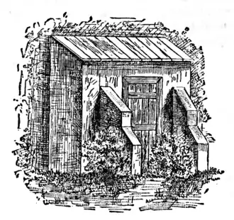 Coming suddenly upon the Camulos ranch-house one might naturally mistake it for some military stronghold. The walls are thick and low, and are strengthened by heavy buttresses, between which is a passage-way to the cellar, and over which have grown honeysuckle vines that climb even to the overhanging eaves of the house. It was on the south veranda, in