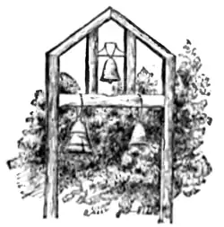 Near the chapel, at the northwest end of the garden, stands a tall frame of heavy beams that support a trio of bells. They came from Spain, and at one time were hung in the tower of one of the Franciscan Missions of California. The largest is cracked, but is still melodious. It is used to call the people to chapel. The one by its side is rung for the children to go to school; that above is the dinner bell. The support is entwined with vines; and behind the bells, a shirt distance away, is a bright green olive grove. Listening to the deep Mellow tone of the large bell, and seeing the Senora, followed by her attendants, walking slowly through the garden to the chapel, one can easily imagine himself in some foreign country. It is all un-American and strange. The heavy white walls of the house, the perfume of orange blossoms and roses, the organ chants and faint sound of prayers recited in Spanish, recall days in Spain where, as here, there was peace and quiet and an existence altogether romantic and poetical.