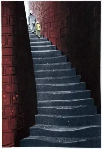 Rhamon climbed after his father up some dark and narrow stairs to still higher rooms. The steps were steep and made of rough stone and earth. On every floor were rooms and rooms filled with old and precious goods, but all of them were grey with dust. Subro wished to see one of the copper bowls.