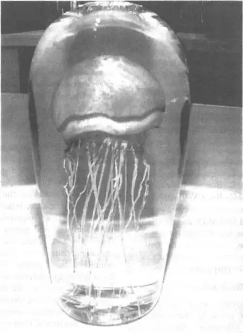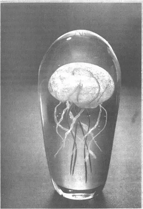 - ↑ The injunction prevented Lowry from making or selling sculptures with “a vertically oriented, colorful, fanciful jellyfish with tendril-like tentacles and a rounded bell encased in an outer layer of rounded clear glass that is bulbous at the top and tapering toward the bottom to form roughly a bullet shape, with the jellyfish portion of the sculpture filling almost the entire volume of the outer, clear glass shroud.”