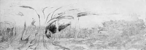In the fields there is neither man nor beast. Overhead is the intense burning sun. But a strong wind has sprung up and is raising a white dust in the eyes of the sun. Look in the distance and you will see that all the leaves and branches of the forest are dancing like mad elephants striking their trunks against each other's bodies, while all the time a hissing panting sound can be heard. Over the fields storms of dust, like hordes of white frenzied ghosts, are tearing along, sometimes turning round and round and sometimes rising high in gigantic forms.