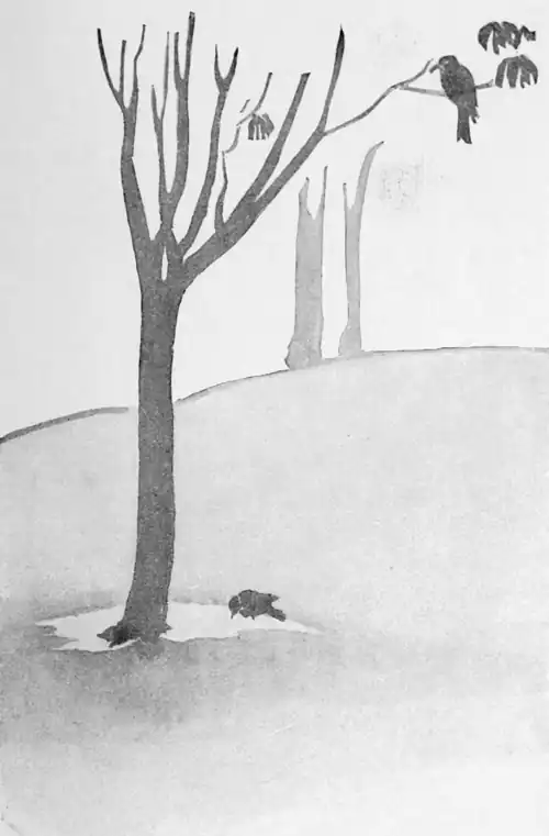 Utonka having left the open fields is taking shelter behind a tree. Take care, Utonka, be careful of your precious ear-rings! For this is the very field where that mysterious cow appeared to you and made you drink its milk—all sorts of unearthly things happen here. It seemed as though Utonka realised his danger; for he sat down carefully and said, “I will see whether I can discover the meaning of what happened to me yesterday.”