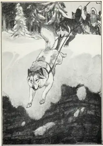 Finally both Wolf and Silversheene came sneaking back and after considerable coaxing they were harnessed with Wolf in the lead and Silversheene next to him. But even so they snarled and snapped at each other whenever there was opportunity.