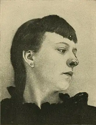 Upon the ala nasi, which is a frequent site of lupus, a scaly