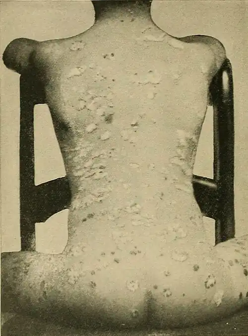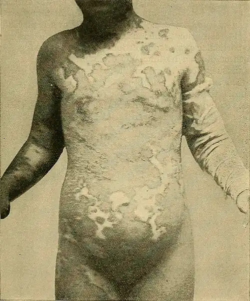 dermatitis exfoliativa has set in and complicated and obscured the psoriasis. When the dermatitis has subsided the psoriasis is very apt to reappear.