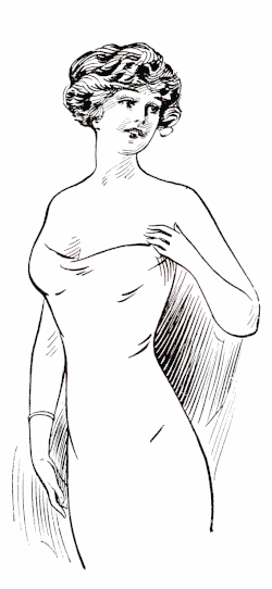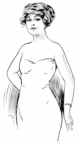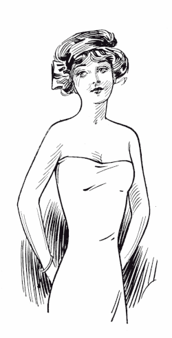 Type 7 ¶ Large bust, smaller hips, well proportioned, fleshy figure. Properly corseted by styles 32, 33, 241, 360, 361 and 434. [A front-laced corset is not advised for this figure.] |