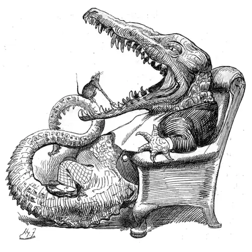 "But the Mouse was running after the Crocodile," I said: "he couldn't run after both!"