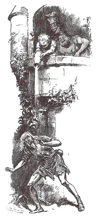 Possibly there was no red-hot poker handy: but some sticks were forthcoming in a moment, and threatening faces surrounded the poor old wanderer, who waved them back with quiet dignity. "No need to break my old bones," he said. "I am going. Not even a crust!"