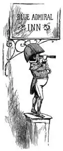 But, so far as ships were concerned, the harbor was as dead as a door-nail, and poor old Uncle Porticle, who kept the inn, had long ago given up all idea of expecting them, and had fallen into a melancholy habit of standing in the little porch that opened on the village street, gazing first to the right and then to the left, and lastly at the opposite side of the way, as if he had a faint hope that certain seafaring men were about to steal a march upon him from the land-side of the town. And Dorothy, who was a lonely little child, with no one in the world to care for but Uncle Porticle, had also fallen into a habit of sitting on the step of the porch by way of keeping him company; and here they passed many quiet hours together, with the big robin hopping about in his cage, and with the Admiral himself, on his pedestal beside the porch, keeping watch and ward over the fortunes of the inn.