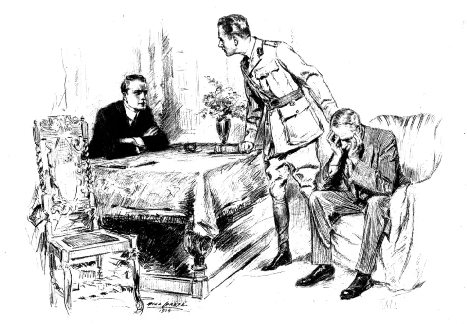 - “I know what you are thinking,” said the lieutenant. “You can not credit your ears. But you have heard correctly. And now—as you might put it—it is up to you. I have been in your country.” He smiled pitifully. “I think I know you Americans. You are not the sort to refuse a man when he is sore beset—as I am.”