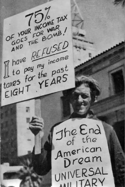 He loved peace, he worked for peace, and he did not do any work which contributed to war. From the time time of the second draft, he worked at the back breaking labor of an agricultural migrant. He worked in dairies, and when the withholding tax meant that he would be contributing, though unwillingly to the war budget, he went farther west and south and did day labor, collecting his pay in advance, so that no Treasury agent could catch up with him.