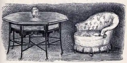 There must always be plenty of room for the fire, and the actual grate should of course be so set as to throw all the warmth into the room. Then, though it is rather a digression,—only I want to finish off the picture which rises up before me,—I would have a couple of chairs something like this (Fig. 12), and just such a table for a book or one's hair-brushes a little in front of these two chairs. And then what a gossip must needs ensue! Of course I would have a trivet on the fire, or before it. No bedroom can look really comfortable without a trivet and a kettle; a brass kettle for preference, as squat and fat and shining as it is possible to procure. There are charming kettles to be found, copied from Dutch designs.