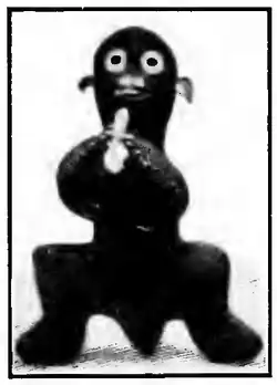 But, perhaps, among the most interesting of his toys were his clay whistles. Some of these burnt or sun-dried toys were hollow and in the shape of birds, beasts and insects. When blown into, they would emit the shrillest kind of a whistle. In others a reed whistle had been placed similar to those in the dolls, and these usually had a bellows to blow them. Whether cock or hen, dog or child, they all crowed, barked, cackled, or cried in the self-same tone.