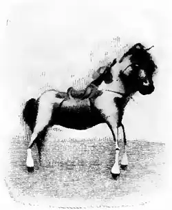 He had gone beyond our instructions. He had brought us a large collection of camels made of cloth the color of the camel's skin, with little bunches of hair on the head, neck, hump and the joints of the legs, similar to those on the camel when it is shedding its coat in the springtime. He had elephants made of a grayish kind of cloth on which were harnesses similar to those supposed to be necessary for those animals. He had bears with bits of hair on neck and tail and a leading string in the nose; horses painted with spots of white and red, matched only by the most remarkable animals in a circus; monkeys with black beads for eyes, and long tails; lions, tigers, and leopards, with large, savage, black, glass eyes, with manes or tails suited to each, and properly crooked by a wire extending to the tip. And finally he laid the bogi-boo, a nondescript with a head on each end much like the head of a lion or tiger. When not used as a plaything, this served the purpose of a pillow.