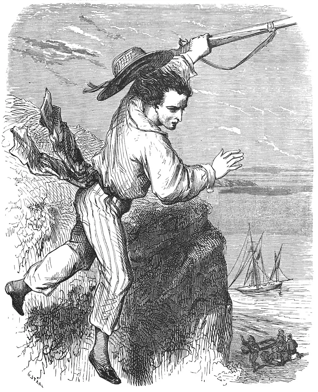 When they had disappeared, he said with a smile: "'Tis strange that it should be amongst such men that we find proofs of friendship and devotion." Then he dragged himself cautiously to the top of a rock, from which he had a full view of the sea, and thence he saw the tartan complete her preparations for sailing, weigh anchor, and, balancing her self as gracefully as a water-fowl ere it takes to the wing, set sail.