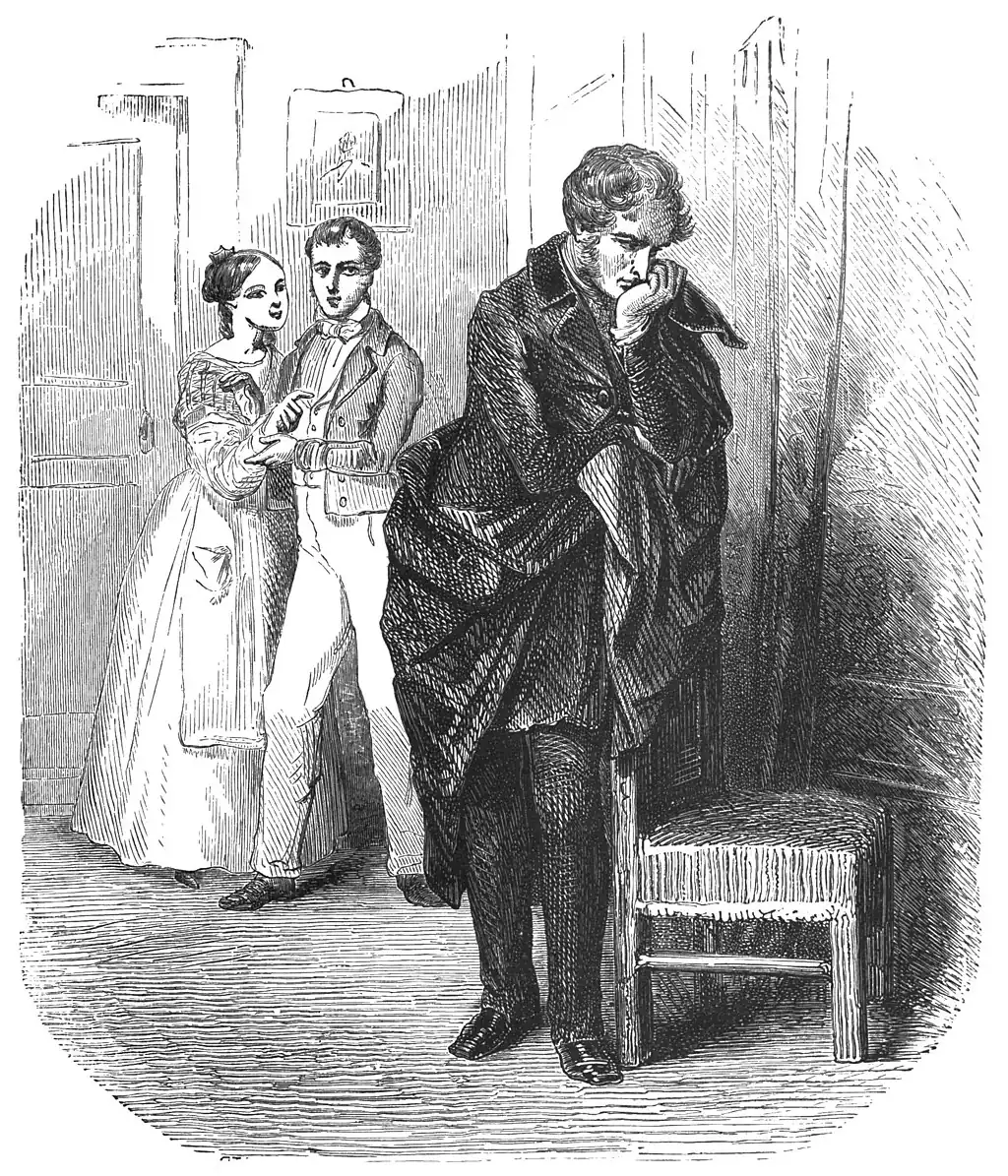 Leaning against a tree, he remained long gazing on those windows, then he advanced to the door, and inquired whether there were any chambers to be let. Though answered in the negative, he begged so earnestly to be permitted to visit those on the fifth floor, that the concierge went up to the present possessors and asked permission for a gentleman to be allowed to look at them. The tenants of the humble lodging were a young couple who had been scarcely married a week, and the sight sent a pang through his heart.