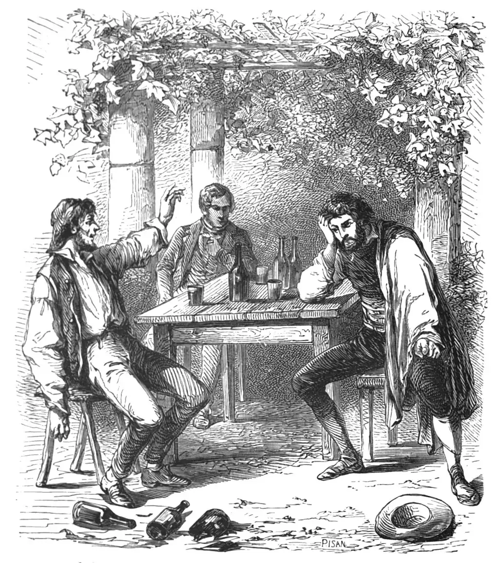 "Well!" resumed the Catalan, as he saw the final glimmer of Cade rousse's reason vanishing before the last glass of wine.