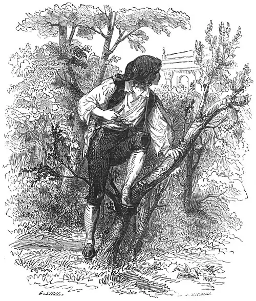 "This man, who was hastening toward the wood, was already three-quarters of the way on the road from the grotto to the forest. Vampa measured the distance; the man was at least two hundred paces in advance of him, and there was not a chance of overtaking him before he reached the wood. The young shepherd stopped, as if his feet had been rooted to the ground; then he put the butt of his carbine to his shoulder, slowly took aim at the ravisher, followed him for a second in his track, and then fired.