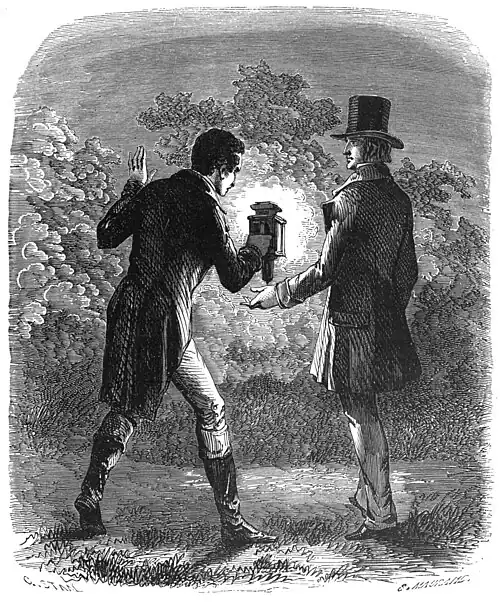 "Ah, monsieur," said he, after having vainly searched on the mantel piece and the shelves, "I have not got any candles."