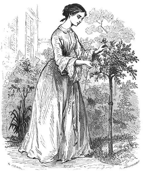 At the sound of their steps a young woman of twenty to five-and-twenty, dressed in a silk robe-de-chambre, and busily engaged in plucking the dead leaves off the splendid rose-tree, raised her head. This was Julie, who had become, as the clerk of the house of Thomson and French had predicted, Madame Emmanuel Herbaut. She uttered a cry of surprise at the sight of a stranger, and Maximilian began to laugh.