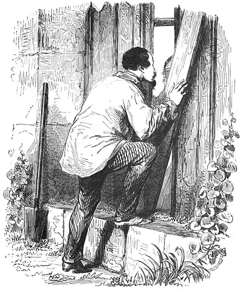 Thus, then, as already stated, the iron gate leading into the kitchen-garden had been closed up and left to the rust; while, to prevent the ignoble diggers and delvers of the ground from presuming to sully with their looks the aristocratical inclosure belonging to the hotel, the gate in question had been boarded up to a height of six feet. True the planks were not so closely adjusted but that a hasty peep might be obtained between their interstices; but the strict decorum and rigid propriety of the inhabitants of the hotel left no grounds for apprehending that advantage would be taken of that circumstance.