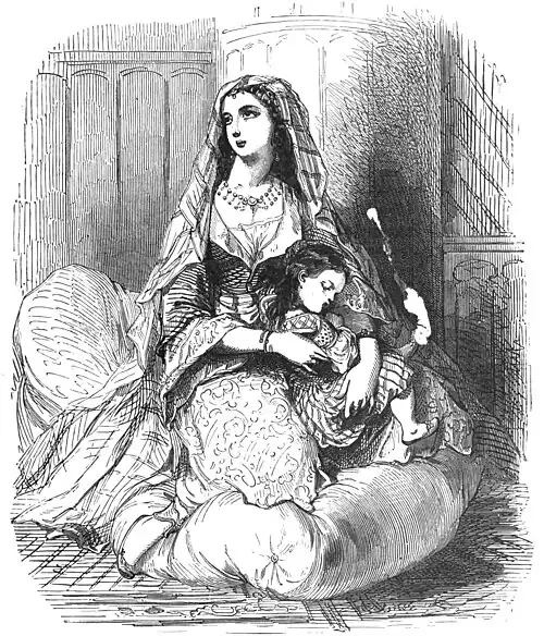 "My mother experienced the same sensations, for I felt her tremble. 'Mamma, mamma,' said I, 'are we really to be killed?' And at the sound of my voice the slaves redoubled their cries and prayers.―'My child,' said Vasiliki, 'may God preserve you from ever wishing for that death which to-day you so much dread!' Then, whispering to Selim, she asked what were his master's orders. 'If he send me his poniard, it will signify that the sultan's intentions are not favorable, and I set fire to powder; if he send me his ring, the sultan pardons him, and I leave the magazine.'―'My friend,' said my mother, 'when your master's order arrives, if it is the poniard which he sends, instead of dispatching us by that death which we both dread, kill us with this same poniard.'―' Yes, Vasiliki,' replied Selim, tranquilly.