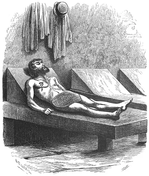 HE daring attempt to rob the count was the topic of conversation throughout Paris for the next fortnight; the dying man had signed a deposition declaring Benedetto to be the assassin. The police had orders to make the strictest search for the murderer. Caderousse's knife, dark lantern, bunch of keys, and clothing, excepting the waistcoat, which could not be found, were deposited at the registry; the corpse was conveyed to La Morgue.