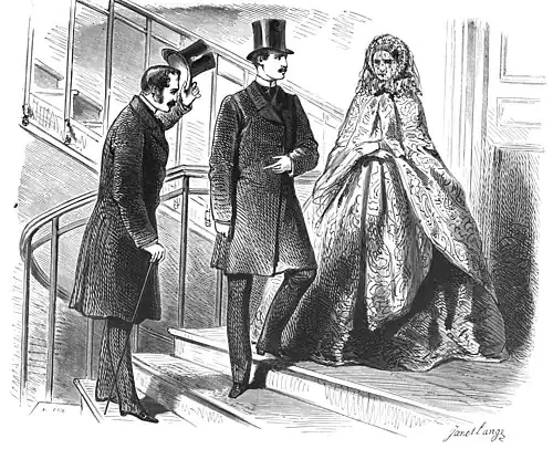 Twenty minutes afterward a carriage stopped at the house, a lady alighted in a black or dark-blue dress, and always thickly veiled; she passed like a shadow through the lodge, and ran upstairs without a sound escaping under the touch of her light foot. No one ever asked her where she was going. Her face, therefore, like that of the gentleman, was perfectly unknown to the two concierges, who of all the confraternity were, perhaps, unequaled throughout the capital for discretion. We need not say she stopped at the first floor. Then she scratched at a door in a peculiar manner, which, after being opened to admit her, was again fastened, and all was done. The same precautions were used in leaving as on entering the house. The lady always left first; and stepping into her carriage, it drove away, sometimes toward the right hand, sometimes the left; then, about twenty minutes afterward, the gentleman would also leave, buried in his cravat or concealed by his handkerchief.