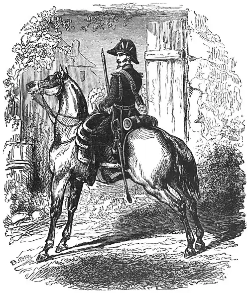 "Well, my boys," said the brigadier, "the brigand must really have escaped early this morning; but we will send to the roads of Villers-Coterets and Noyon, and search the forest, when we shall catch him, no doubt."