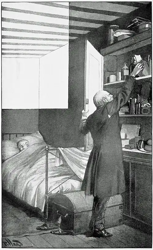 Old Jerry Cater was plainly not long for this world. Ailing for months, he at length gave in and took to his bed. Greer watched him anxiously and greedily, for it was his design, when his master went at last, to get what he could for himself. More than once during his illness old Cater had sent Greer to fetch his nephews. Greer had departed on these errands, but never got farther than the next street. He hung about a reasonable time—perhaps in the "Ship and Anchor," if funds permitted—and then returned to say that the nephews could not come just yet. Old Cater had quarrelled with his nephews, as he had with everybody else, some time before, and Greer was resolved, if he could, to prevent any meeting now, for that would mean that the nephews would take possession of the place, .jpg)
