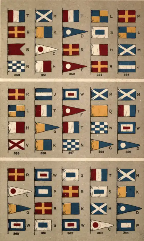 350 to 354 Flag-signals of some of the numerous Victorias on the Shipping List. 355 to 359 Flag-signals of some of the numerous Australias on the Shipping List. 360 to 364 Flag-signals of some of the numerous Britannias on the Shipping List.