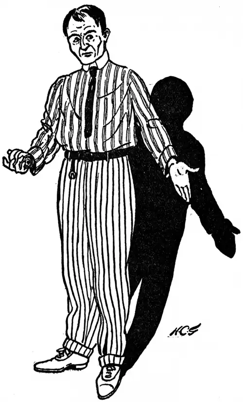 “I told him about a week longer. He says that’ll suit him fine. His cousin is coming over from Brooklyn that evening and they are going to see the sights of New York. His cousin, he says, is in the artificial limb and lead casket business, and hasn’t crossed the bridge in eight years. They expect to have the time of their lives, and he winds up by asking me to keep his roll of money for him till next day. I tried to make him take it, but it only insulted him to mention it.