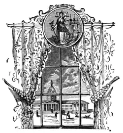 The capitol is a very noble and a very beautiful building, both within and without, but you need not examine it now. Still, if you greatly prefer going into the dome, go. Now your general glance gives you picturesque stretches of gleaming water, on your left, with a sail here and there and a lunatic asylum on shore; over beyond the water, on a distant elevation, you see a squat yellow temple which your eye dwells upon lovingly through a blur of unmanly moisture, for it recals your lost boyhood and the Parthenons done in molasses candy which made it blest and beautiful. Still in the distance, but on this side of the water and close to its edge, the Monument to the Father of his Country towers out of the mud—sacred soil is the customary term. It has the aspect of a factory chimney with the top broken off. The skeleton of a decaying scaffolding lingers about its summit, and tradition says that the spirit of Washington often comes