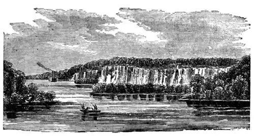 At the end of nearly a week of travel, the party went into camp near a shabby village which was caving, house by house, into the hungry Mississippi. The river astonished the children beyond measure. Its mile-breadth of water seemed an ocean to them, in the shadowy twilight, and the vague riband of trees on the further shore, the verge of a continent which surely none but they had ever seen before.