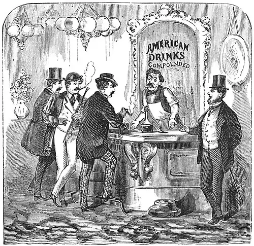 We ferreted out another French imposition—a frequent sign to this effect: “All Manner of American Drinks Artistically Prepared Here.” We procured the services of a gentleman experienced in the nomenclature of the American bar, and moved upon the works of one of these impostors. A bowing, aproned Frenchman skipped forward and said: